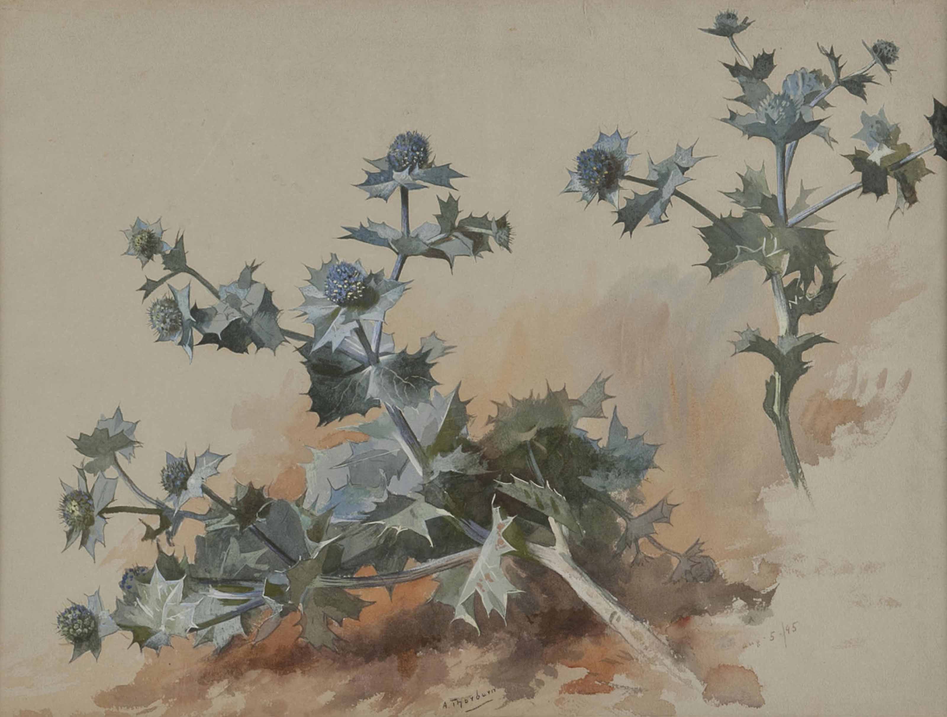 | Pencil and watercolour heightened with bodycolour on blue-grey paper | |