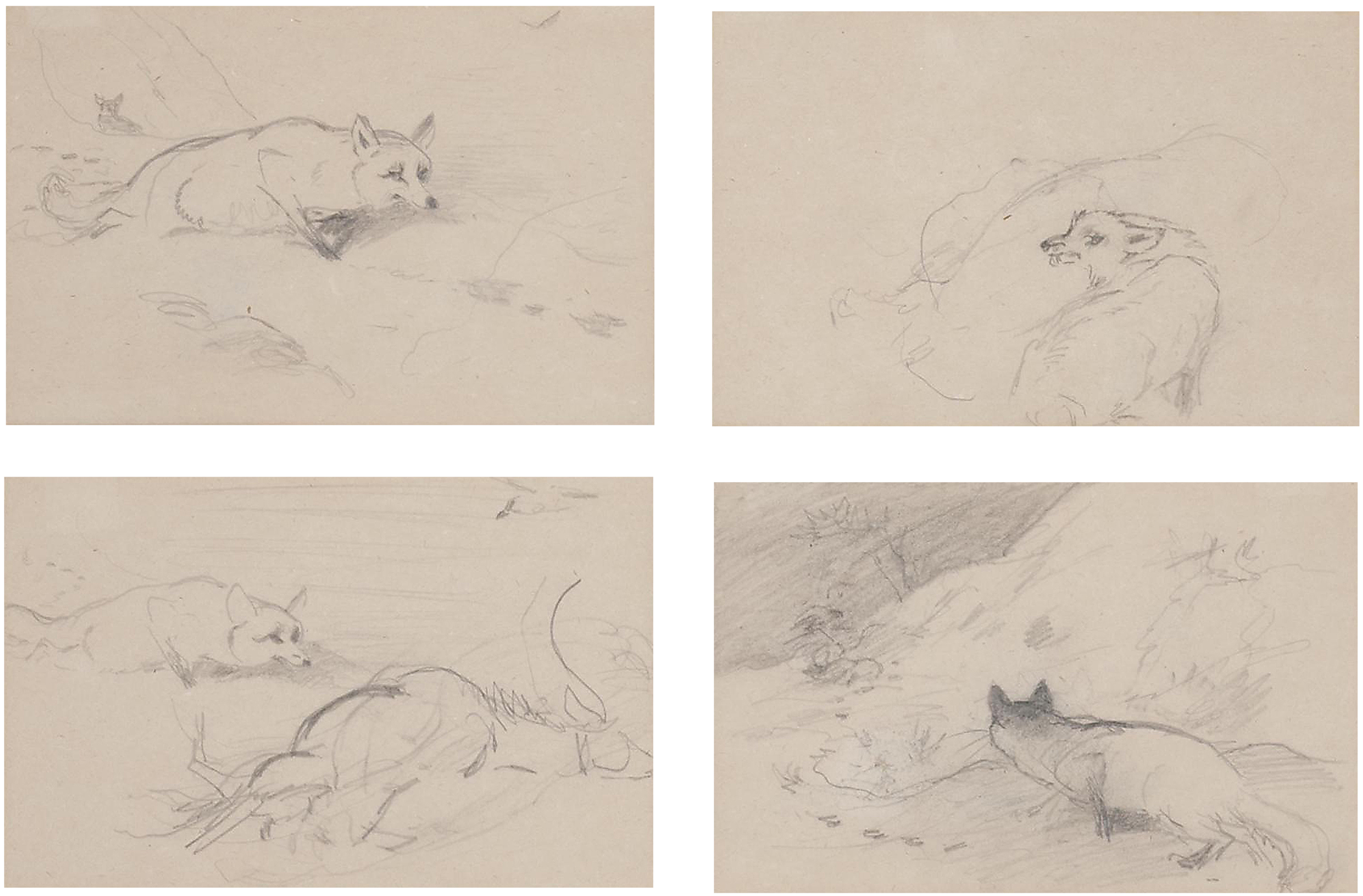 | Studies of fox and dead stag; lapwing; snipe; and capercaillie; thirteen drawings, one letter | |