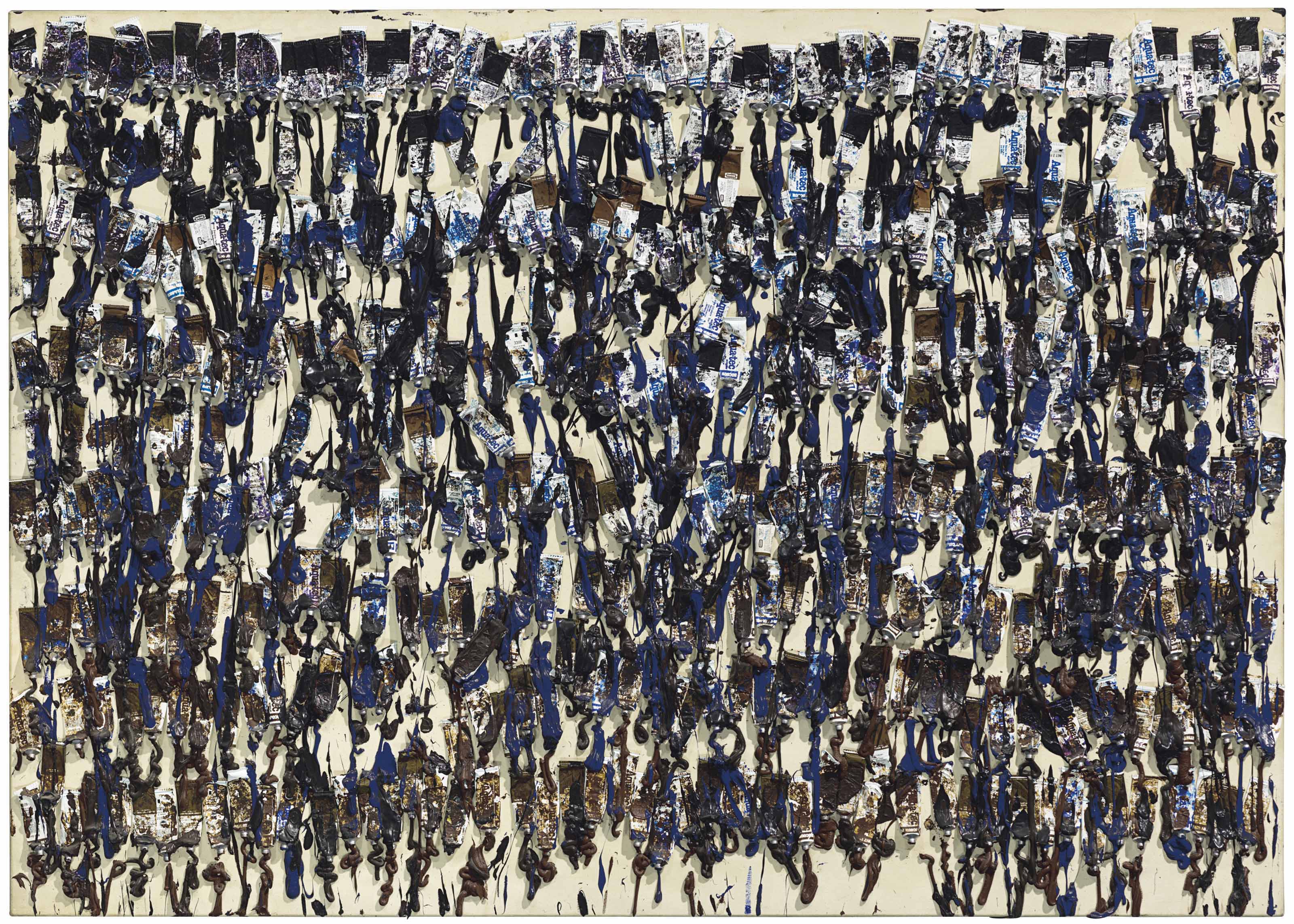 | Acrylic paint tubes and acrylic on canvas laid down on panel | |