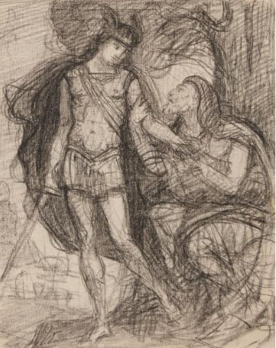 Drawing in black pencil.