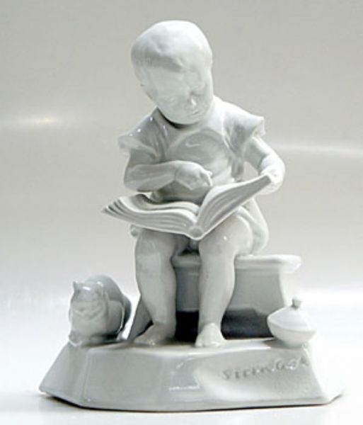 Lesender Knabe mit Katze und Kreisel