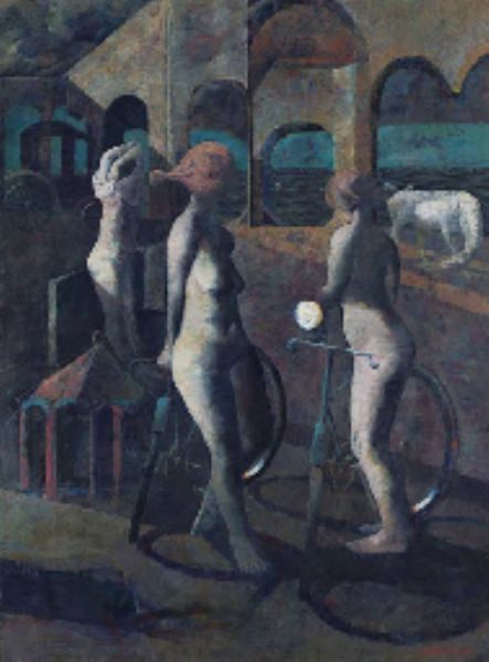 | Baigneuses, bicyclettes, une cage á oiseaux, cheval blanc | |
