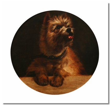 Portrait study of a Norwich Terrier by a table