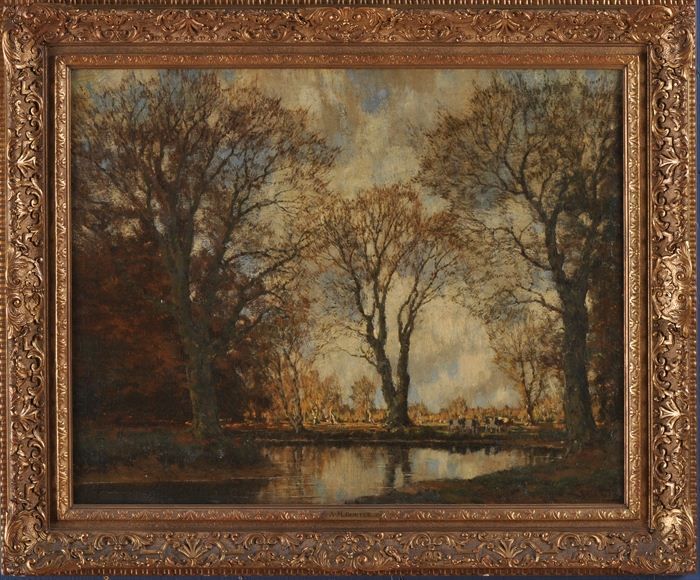 PASTORAL AUTUMN LANDSCAPE WITH GRAZING COWS