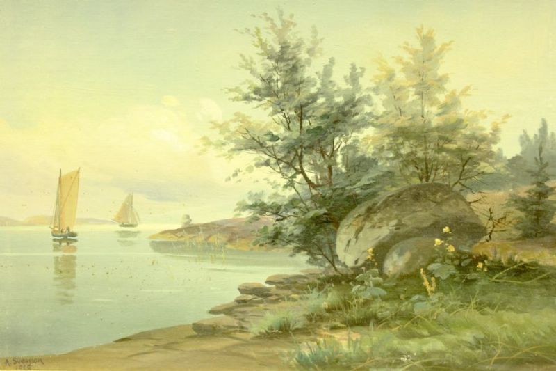 Kustmotiv med båtar