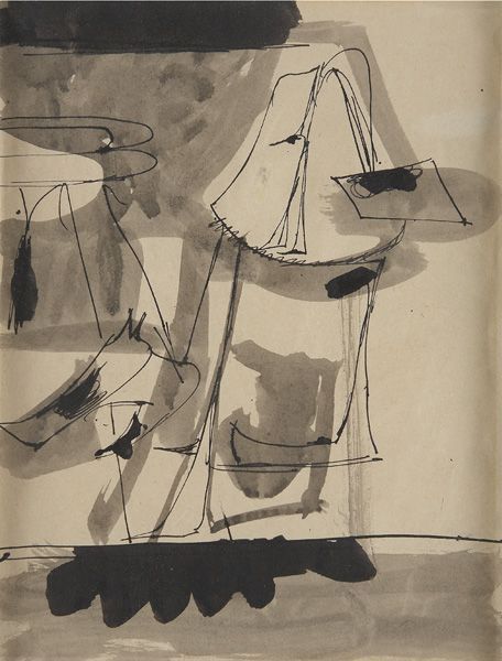 Ink wash and crayon on paper