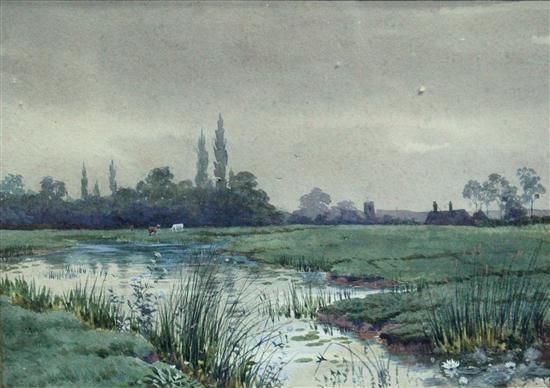 Watermeadows with distant cottages
