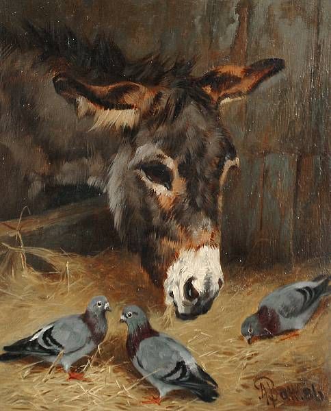 Donkey with pigeons