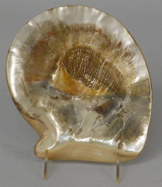 UNUSUAL DEER PAINTING ON ABALONE SHELL