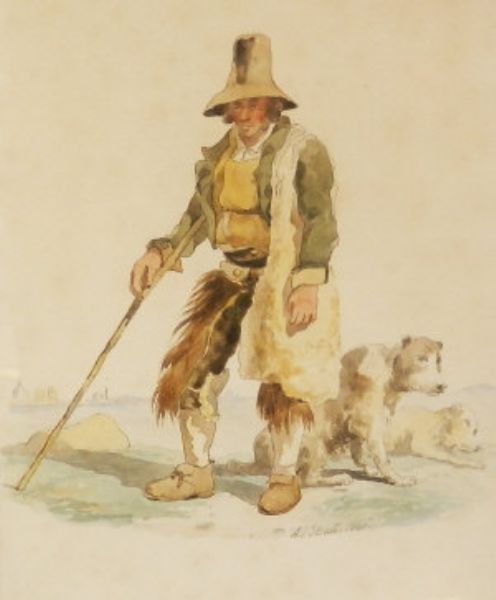 A peasant with his dogs