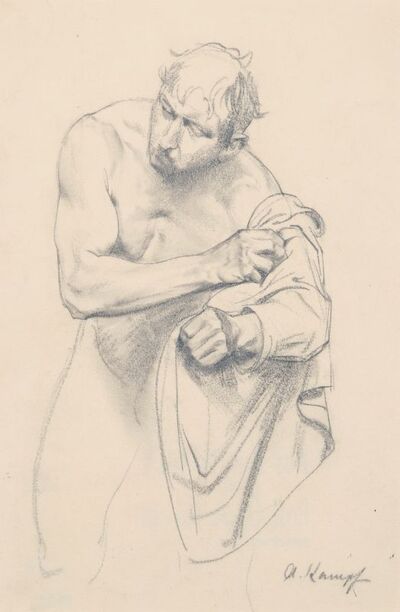 Aktstudie eines Mannes, das Hemd abstreifend. Ohne Jahr