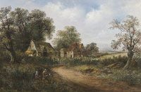 Figures by a Cottage in a Rural Landscape