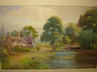 Figures before a Riverside Cottage