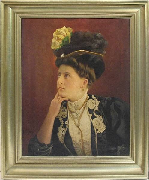 | A portrait of a woman, half-length, in a black dress with white lac | |