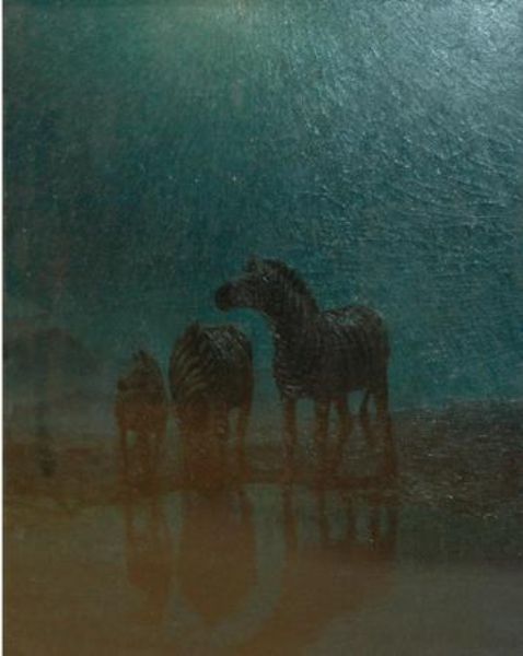 Zebras Grazing-Moonlight