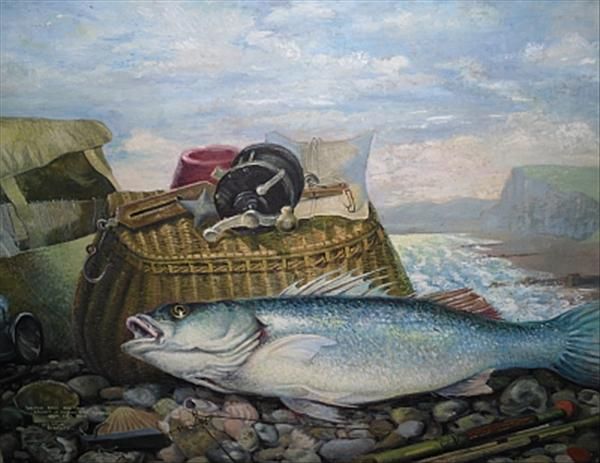 Salmon Bass, Caught at Glyne Gap, Bexhill Sept 23rd 1950