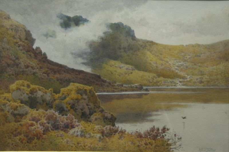 A CUMBERLAND TARN, with low cloud on bracken covered fells