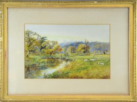 landscape scene with sheep and river