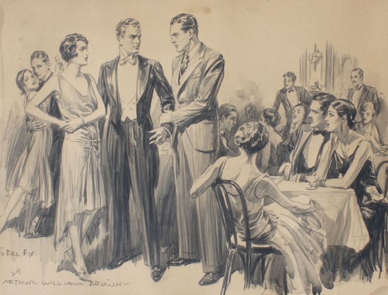 Night Club Illustration Depicting an Argument between 2 Men over a Girl