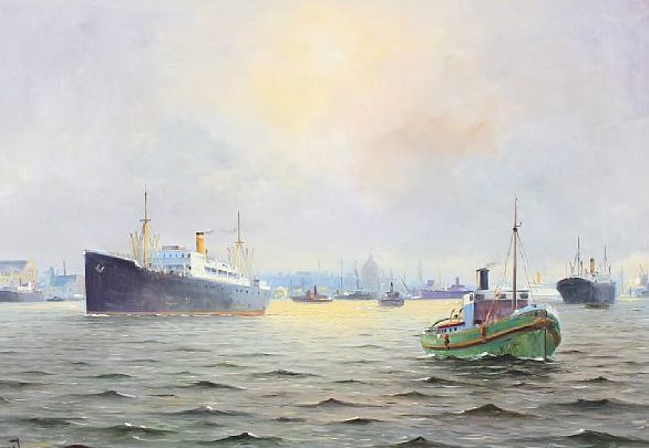 | umerous ships in the Port of Copenhagen with the marble church in the background | |