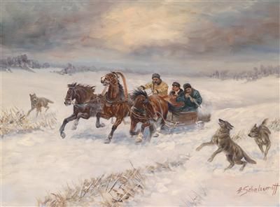 Troika in the Snow on a Wolf Hunt