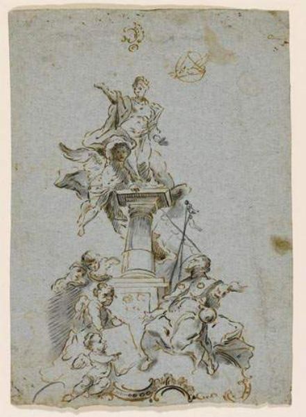 | Sketch for an altar painting with kneeling saint in front of a pillar. | |