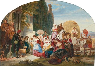 | Peasants in the Roman Campagna Praying before an Image of the Madonna at the Entrance to a Monastery | |