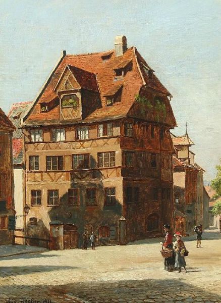 | Street scene from Nuremberg with Albrecht Dürer's house on Tiergärtnertorplatz | |