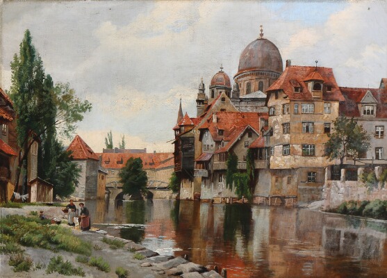 | The synagogue in Nuremberg seen from Schütt Island | |