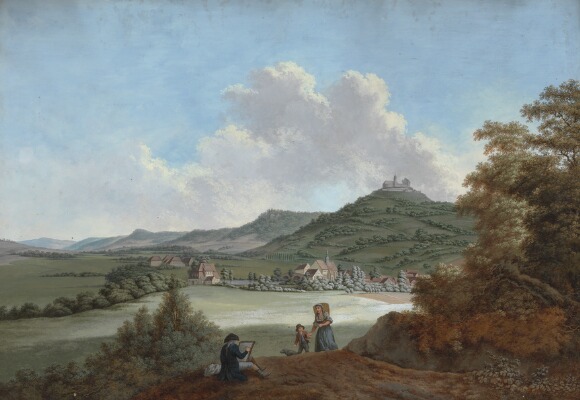 | A pair of mountainous landscapes with an artist painting en plein-air. | |