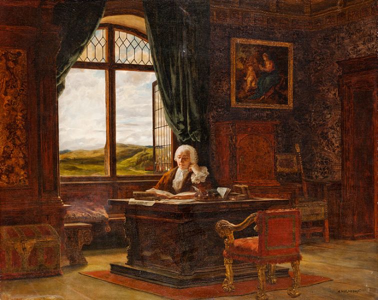 | In Foliant lesender Landedelmann am Schreibtisch in Renaissanceinterieur sitzend. | |