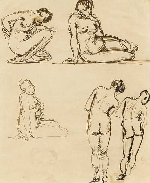| Studies of nudes. On the reverse: Stitching woman, two heads | |