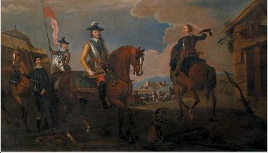 | Portrait du Comte von Anholt et de deux autres commandants devant la ville de Widenbruck | |