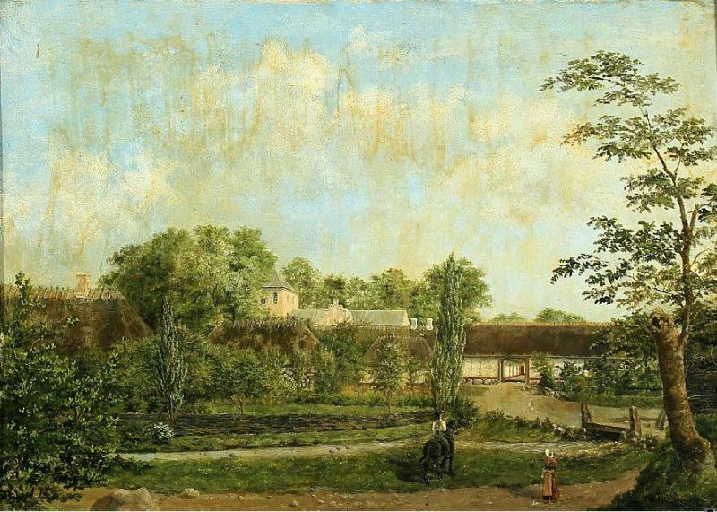 | Scenery from Vigerslev vicarage with a woman and a rider by a stream | |