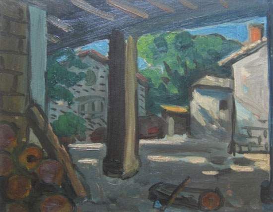 Coin de hangar et cour de ferme, vers 1925
