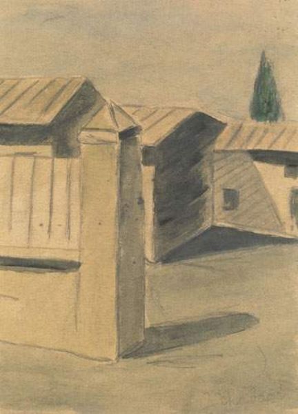 Lead pencil and ink wash on paper