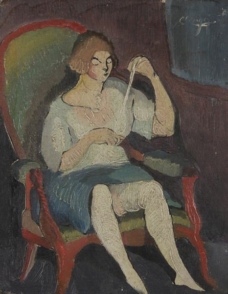 Femme assise cousant
