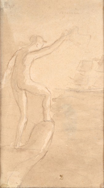 | Marie, montée sur le rocher, regardant vers le bateau qui emporte Virginie, héroïne du roman Paul et Virginie de Bernardin de Sa | |
