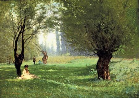 JEUNE FEMME ASSISE SOUS UN SAULE