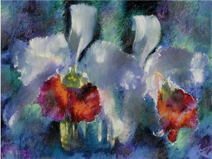 Orchideen auf blauem Grund. (orchids on a blue ground)