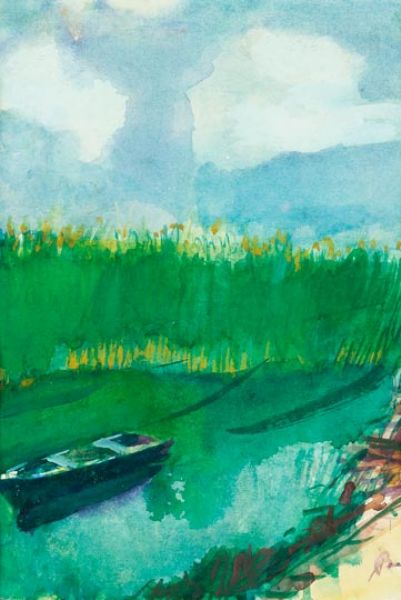 Vízparti nádas csónakkal