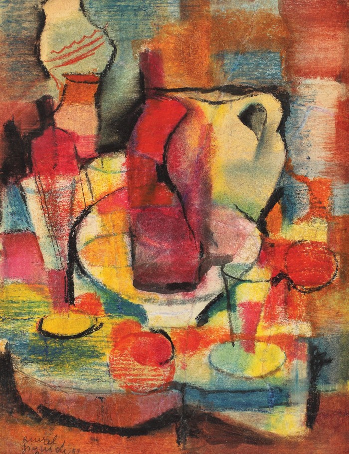 | Watercolor and colored pencils on paper glued on cardboard | |