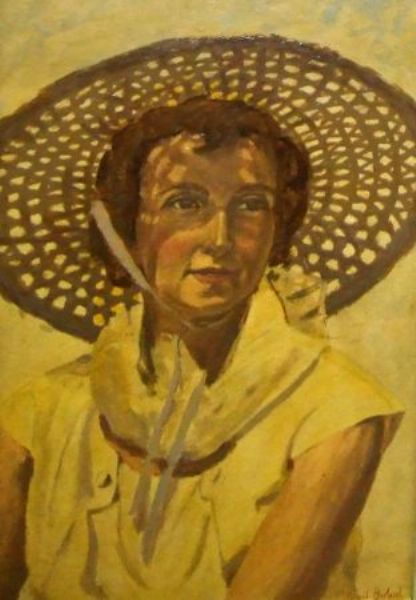 Head and Shoulders Portrait of a Lady in Yellow Dress, Wearing Sun Hat