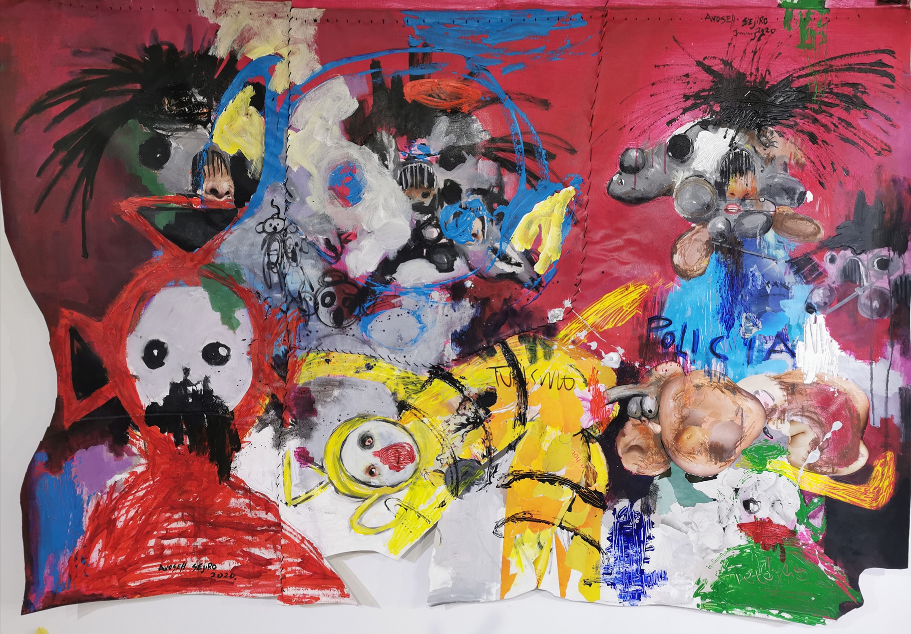 | Acrylic and paper on canvas | |