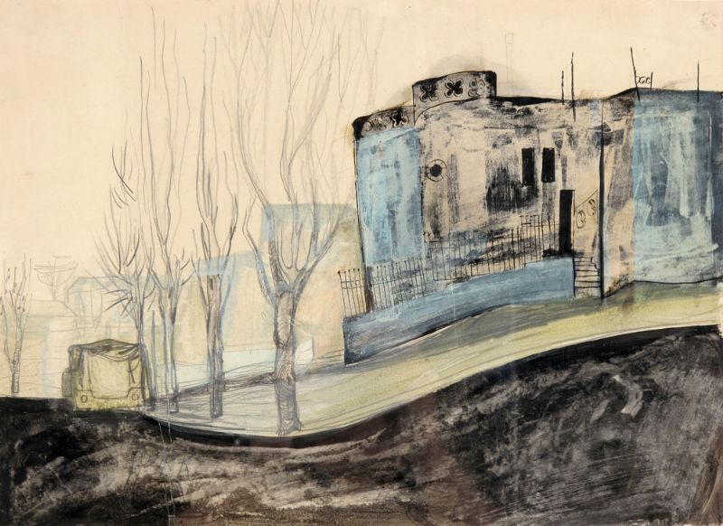 Watercolor pencil and ink on paper