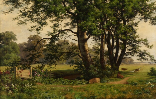 “Køer ved Leire Aa”. Cows in a field by Lejre creek