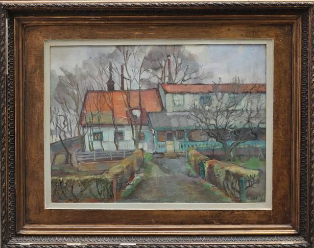 Gammal gård "... Bergsundsgatan på söder" av konstnären egenhändigt målad ram