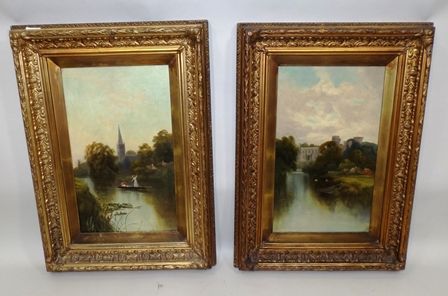 Holy Trinity from over the Avon with girl in a punt in foreground and COMPANION Warwick Castle