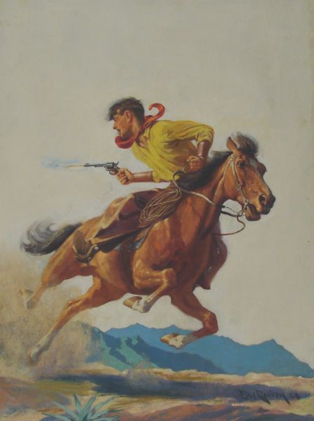 Gunfight, believed to be a cover illustration for the pulp magazine Larait Story