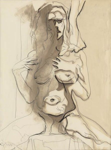| Pen and brown and black ink and wash and pencil and collage | |